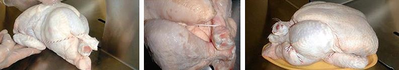 The automatic chicken-tying machine does what it promises: up to four times greater throughput and simultaneously reduced costs compared to manual binding methods. Machine binding relieves strain on workers’ posture and prevents wrist ailments. The FRT-MF binding system holds the chicken thighs in a crossed position and gives the roast chicken a natural, symmetrical and voluminous appearance